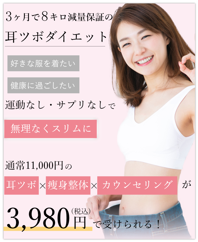 色々なダイエットに挑戦も良いと思いますが、辛くも厳しくもなく、そして1人で孤独に頑張るのではな、耳ツボダイエットおすすめします。